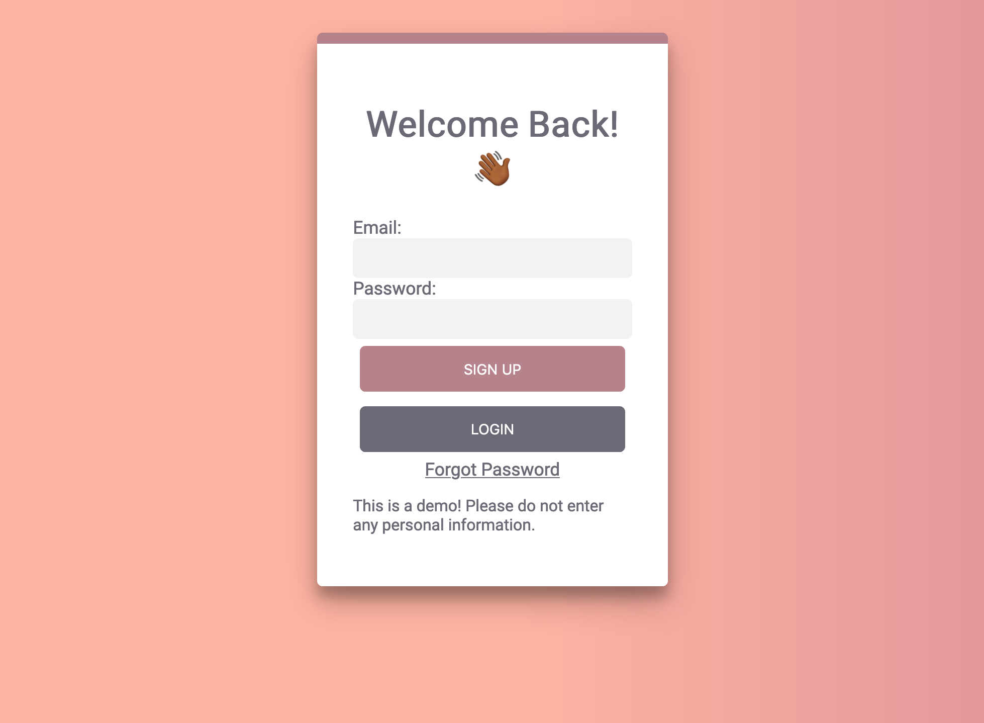 The two screenshots below show the difference in appearance when one line in the CSS file is changed from --accent-color: orange; to --accent-color: #b5838d; which is used in two completely separate places -- on the card's border-top property and the background color for the signup button. This can be very useful as stylesheets grow and values are re-used throughout.
