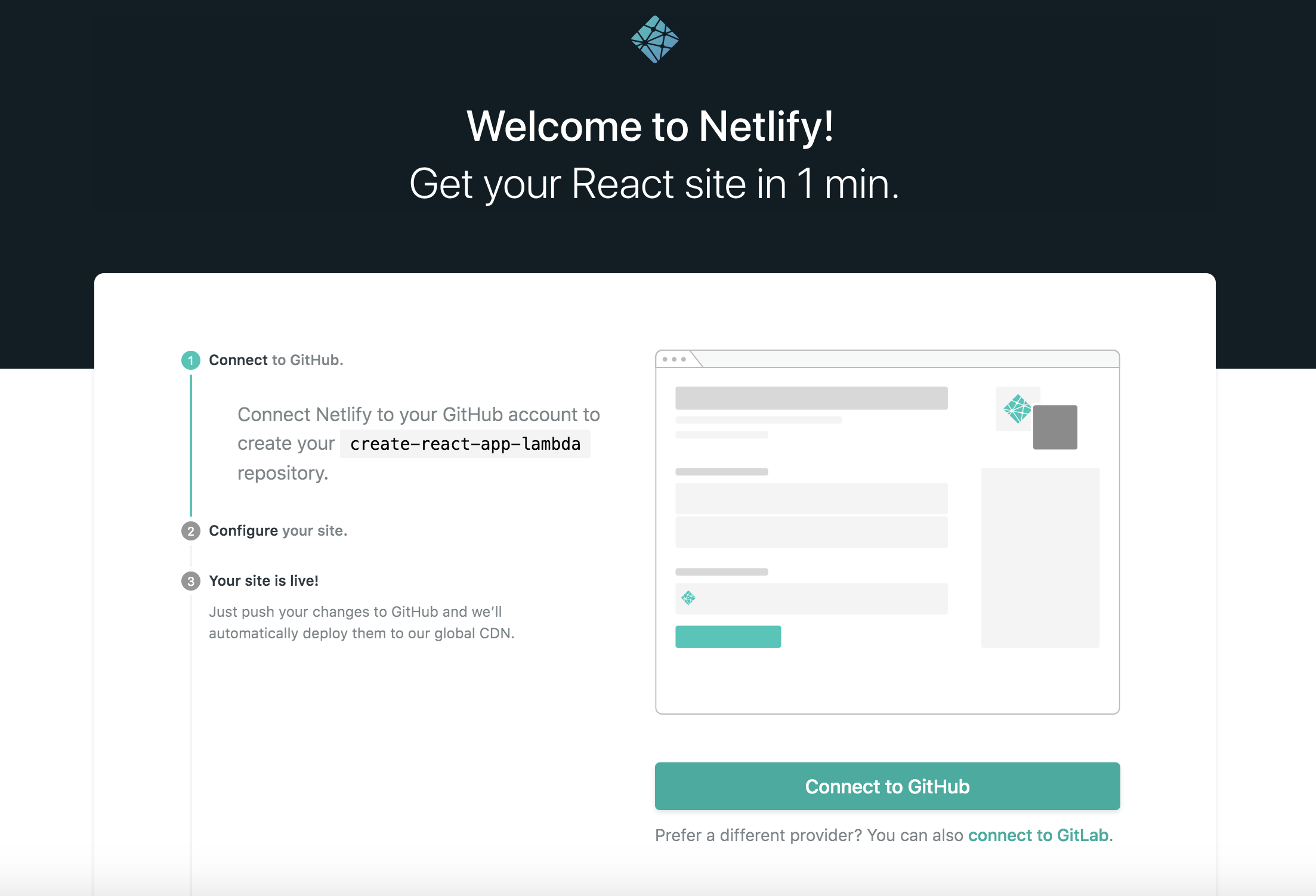 Let’s get started by copying over create-react-app-lambda . Click on the “Deploy to Netlify” button in the README.