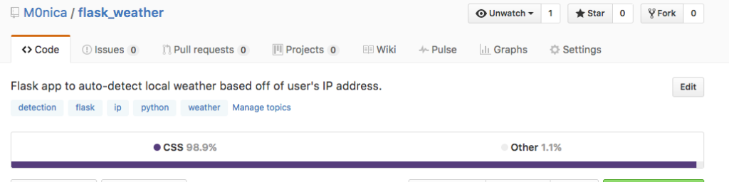 I recently started working on a Weather app in Flask to auto-detect a userās location based off of their IP address. After committing some updates to GitHub my app switched from being labeled as predominately Python to 98.9% CSS even though it was a Flask application in which most of the code I had written was in Python and HTML. Now and again, I do not agree with how GitHub classifies the languages in my repositories so I set out to figure out how to fix this issue.